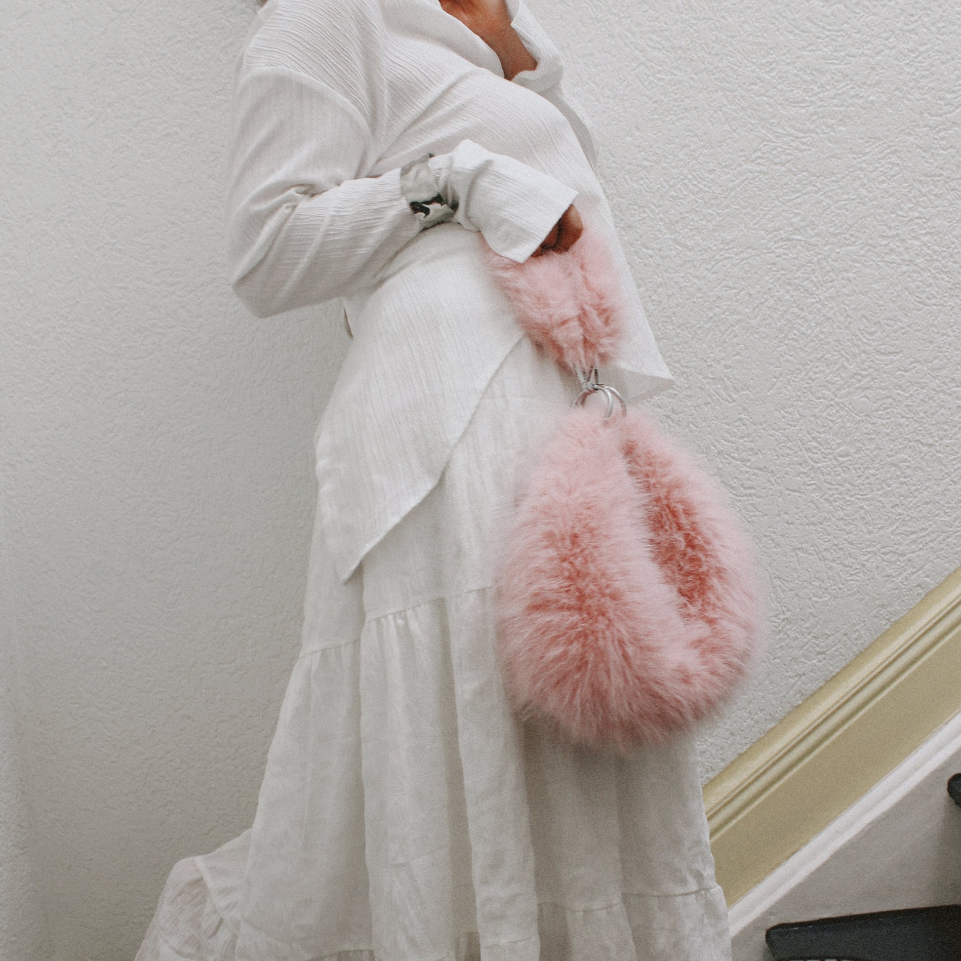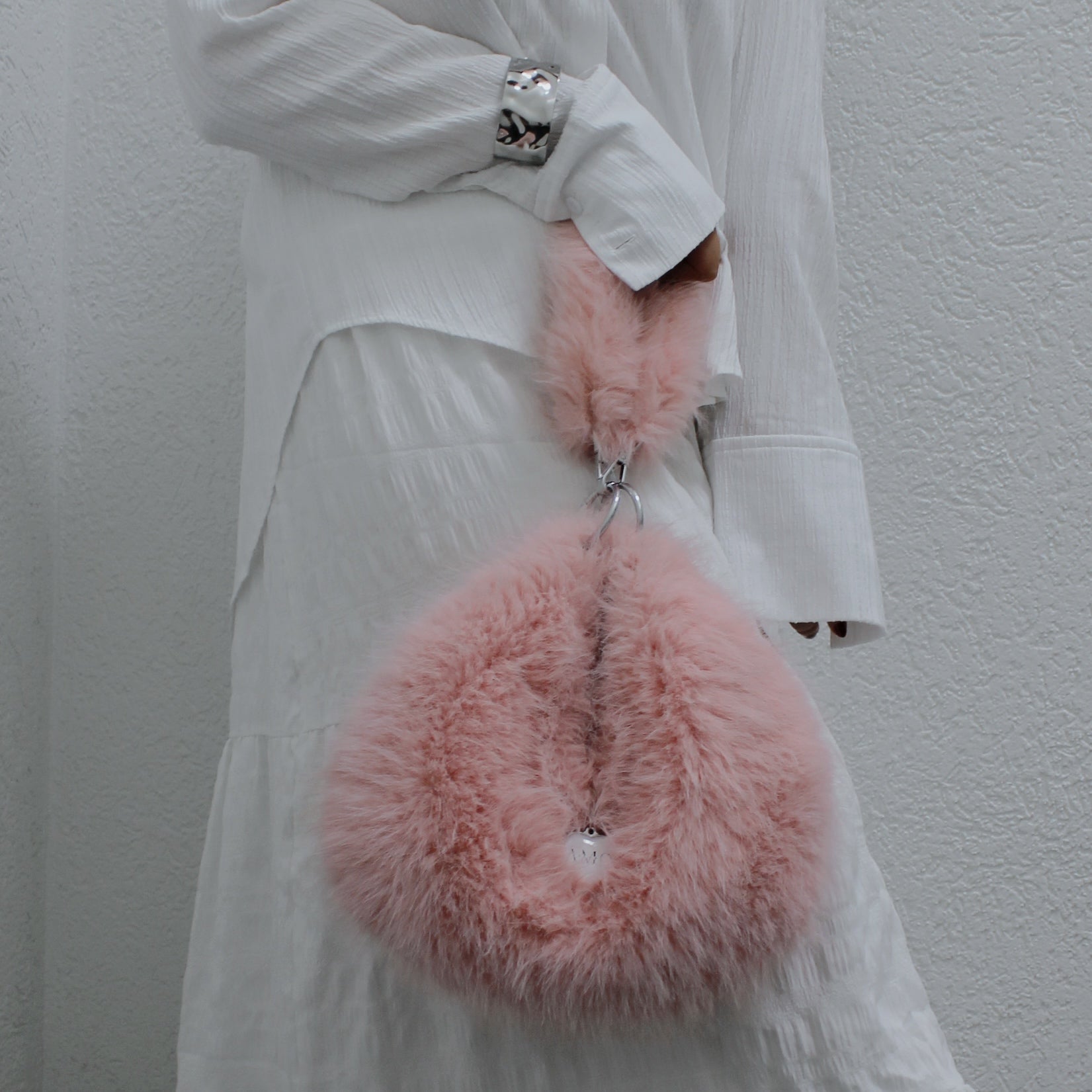 Unsere flauschige Tasche Giappone symbolisiert eine zarte, dennoch starke Weiblichkeit. Mit ihrer sanften Oberfläche im hellen Rosaton unterstreicht sie eine unschuldige Verspieltheit. Dennoch erschafft sie durch ihre unkonventionelle Erscheinung einen selbstsicheren Auftritt.